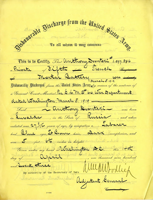 Anthony was Military #1097846 5th trench Mortar Battery Brigade, 5th Division. He departed from NY